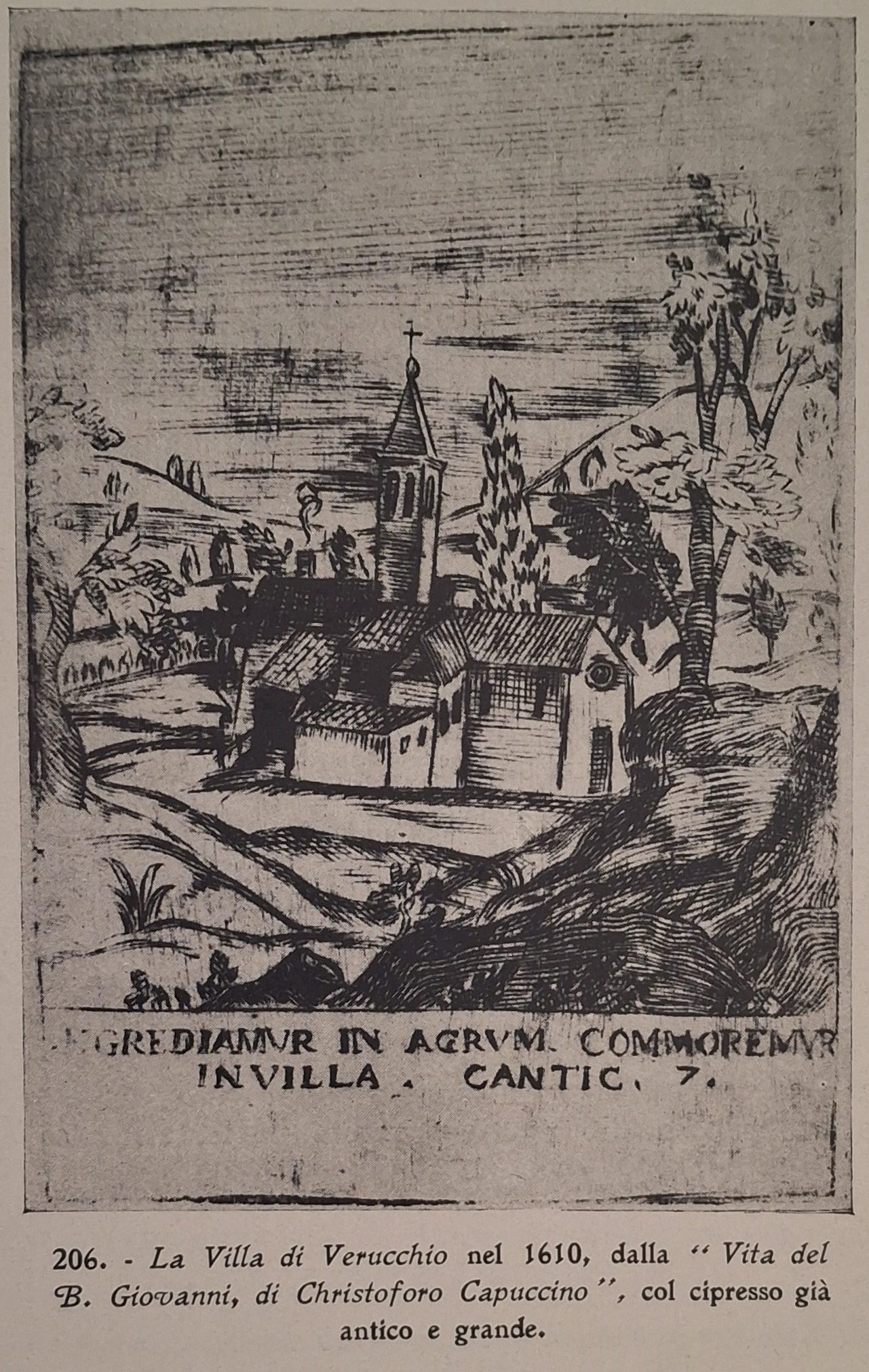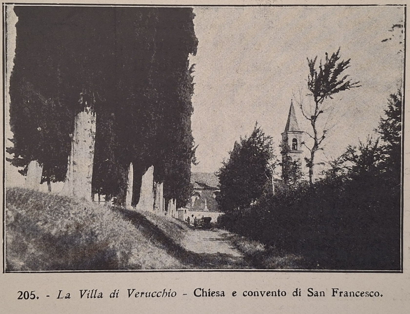 Rinvenuti casualmente nel 2021, rappresentano una testimonianza inedita del Trecento riminese, attribuibile a Pietro da Rimini, uno fra i maggiori allievi della celebre scuola giottesca. All’interno del ciclo frammentario, compare la figura di San Francesco d’Assisi, in particolare nella scena della cacciata dei demoni da Arezzo. È noto che il Santo giunse a Verucchio almeno due volte, visitando il luogo in cui esisteva un’antica cappella e dove più tardi, sorse l’attuale convento. La sacralità del luogo è dovuta anche alla presenza di un cipresso secolare, secondo tradizione nato miracolosamente dal bordone del santo poverello.